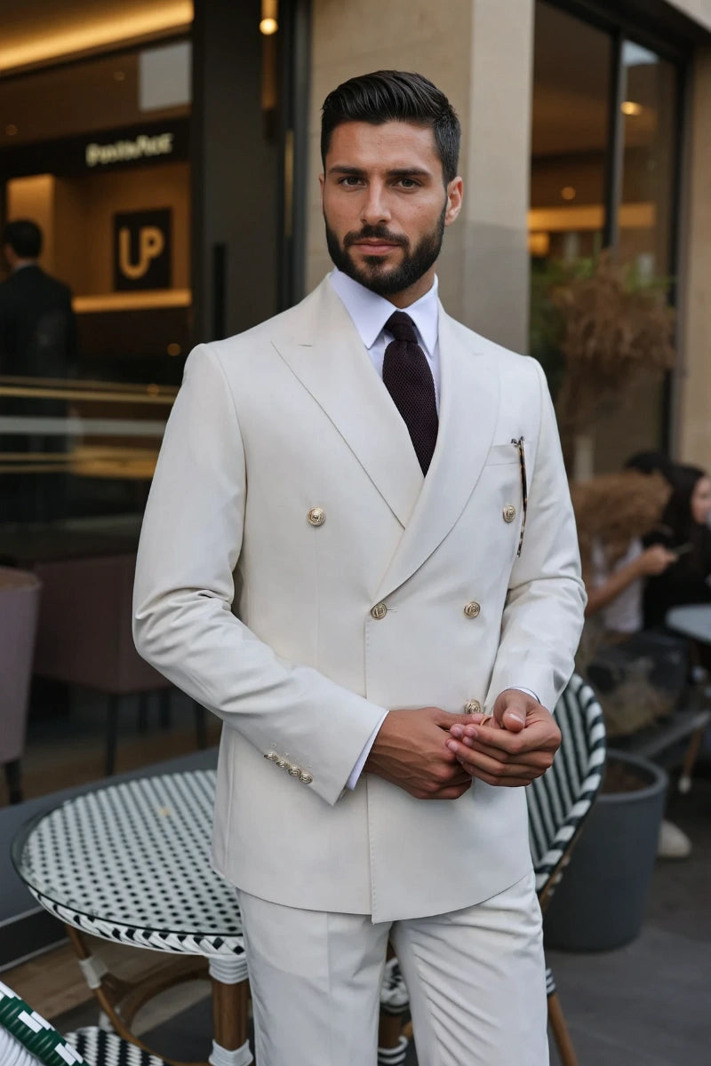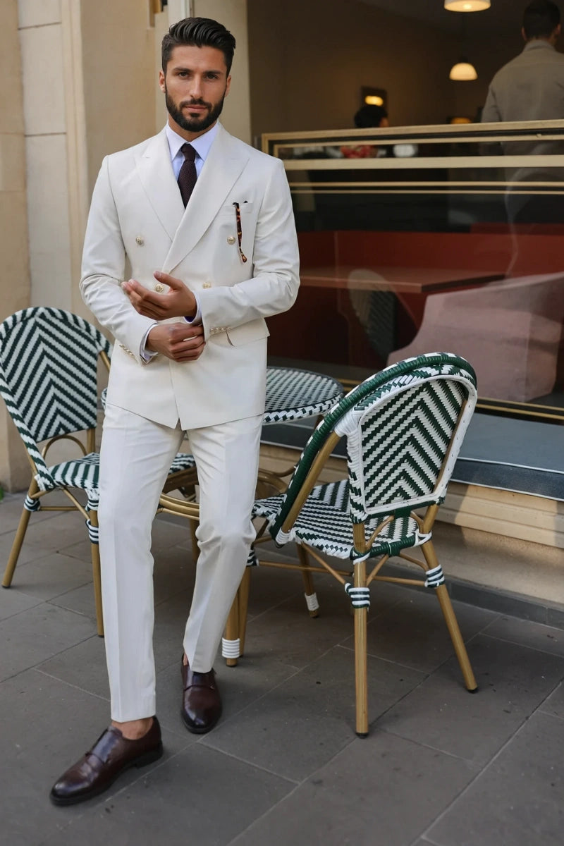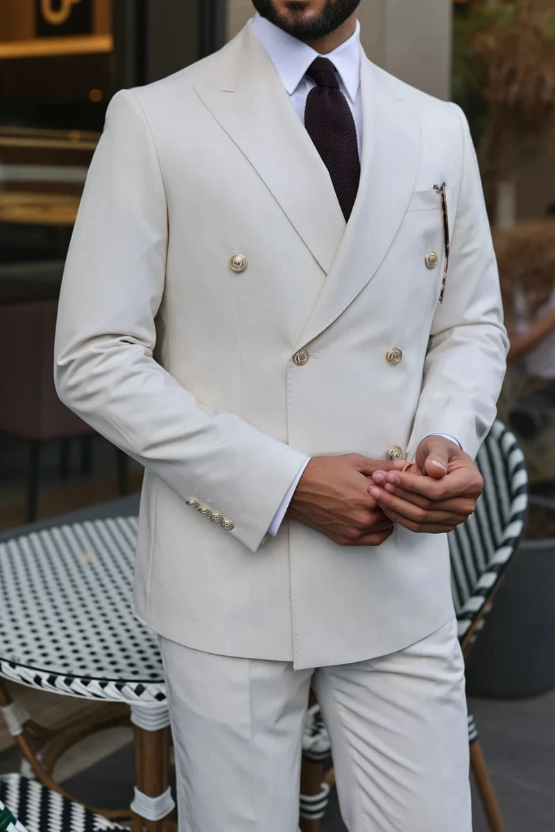 Men Off White Double Breasted Two Piece Suit – Elegant Formal Outfit