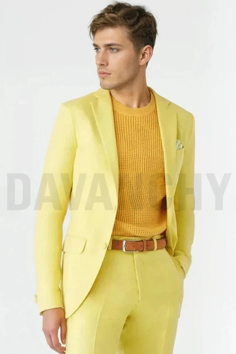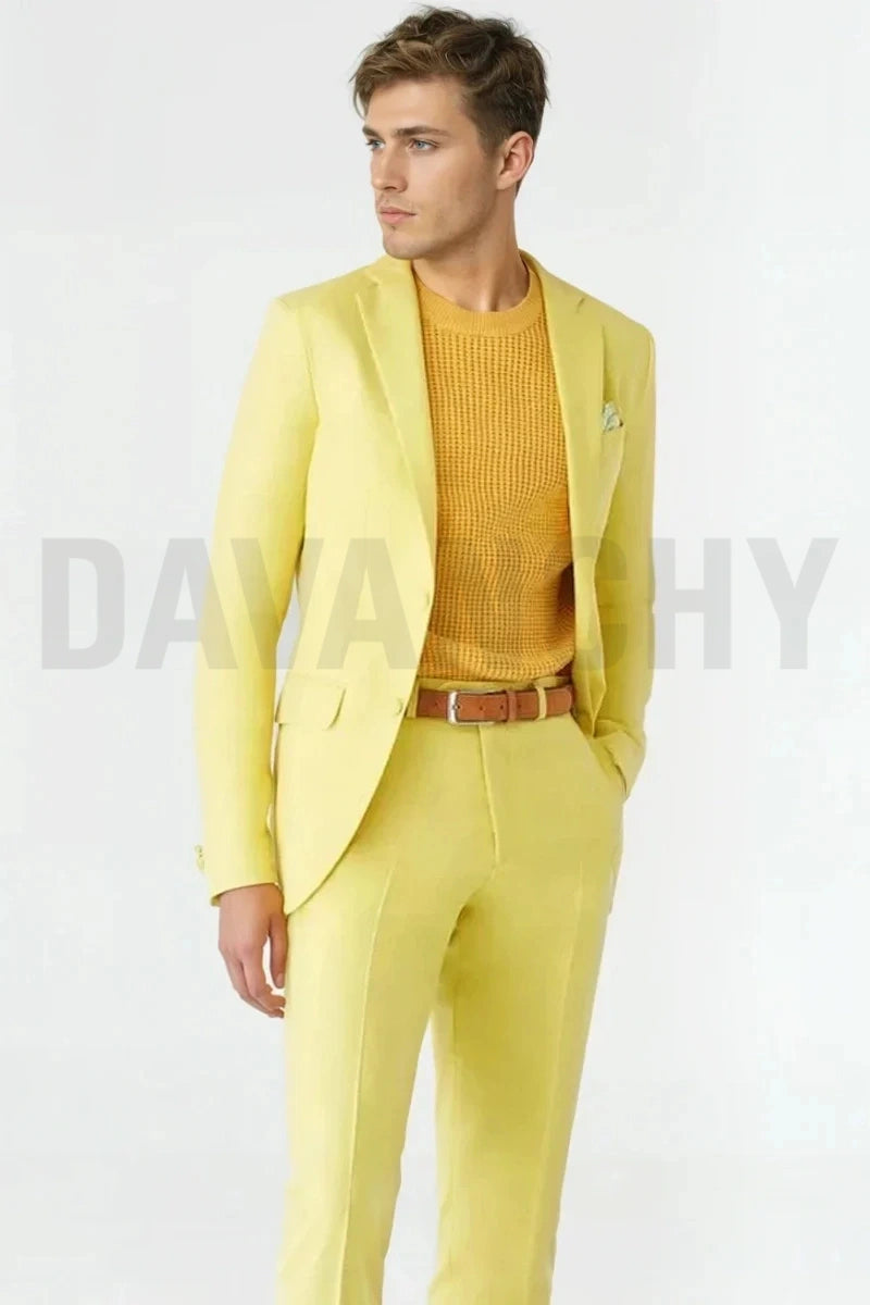 Men Yellow Two Piece Suit – Stylish Casual Outfit for Parties Events