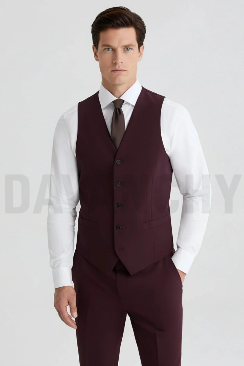 Men Wine Formal Waistcoat – Tailored Fit Premium Stylish Jacket