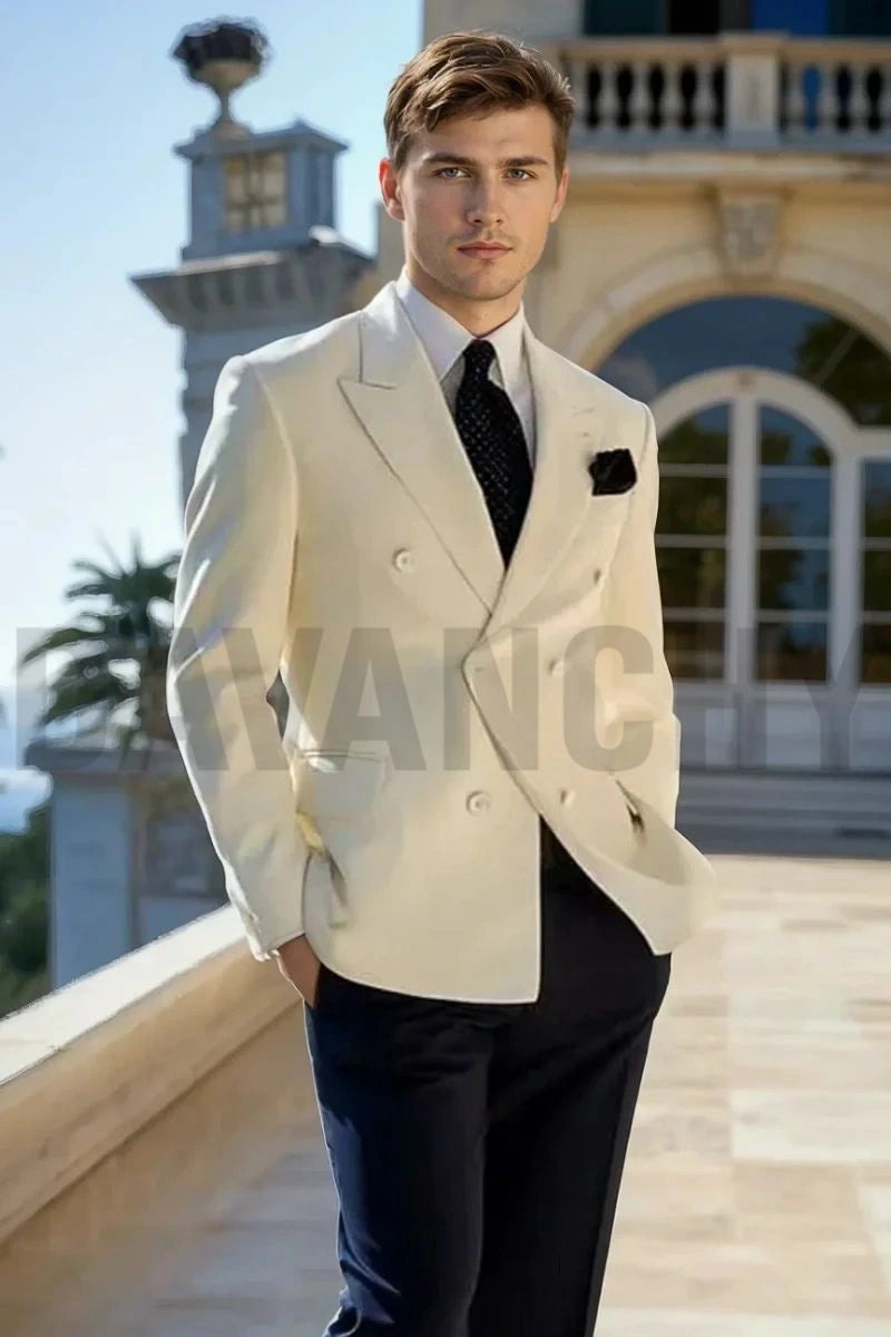 Men Off White and Navy Blue Two Piece Suit – Formal Events Wear